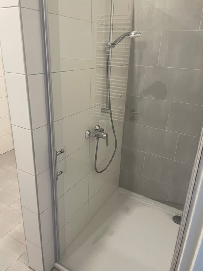 - Großes Duschbad mit Waschmaschinenstellplatz